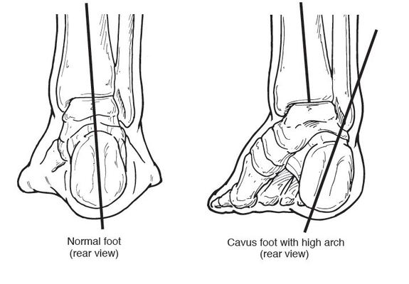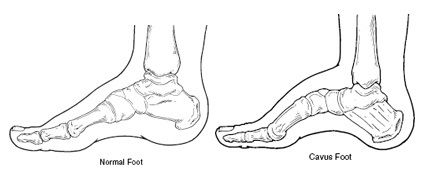 Cavus foot is a condition in which the foot has a very high arch. Because of this high arch, an excessive amount of weight is placed on the ball and heel of the foot when walking or standing. Cavus foot can lead to a variety of signs and symptoms, such as pain and instability. It can develop at any age and can occur in one or both feet.